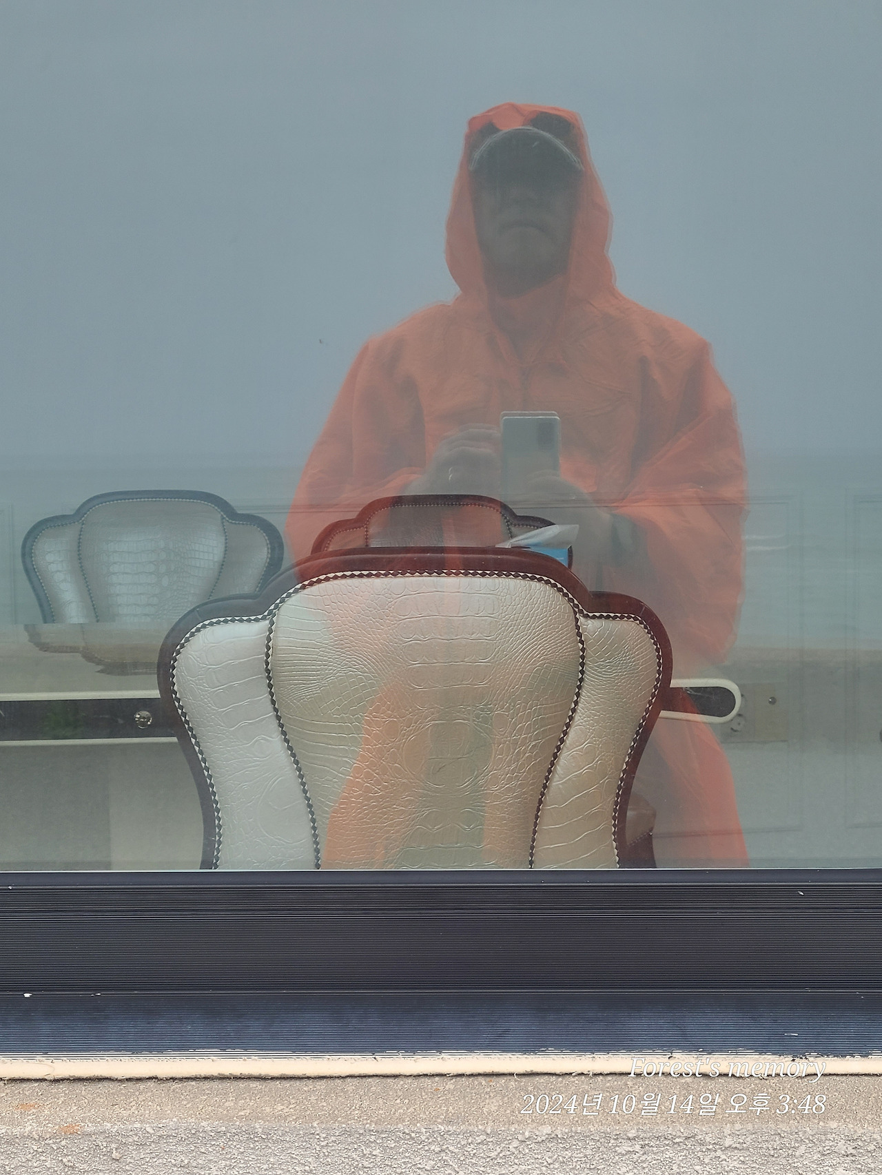 빗방울이 떨어지기 시작해 우의를 꺼내 입고 걷기 시작한다.