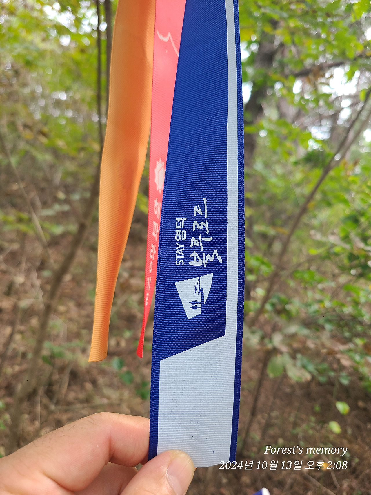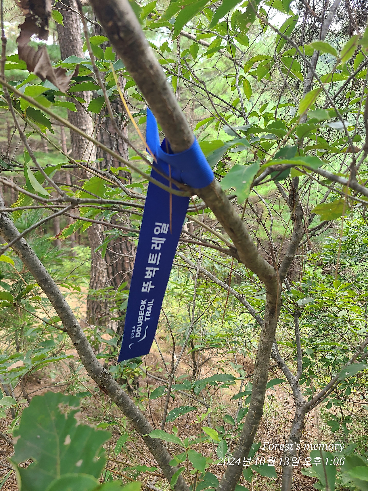 중간중간 코스 안내 리본이 있긴 한데, 초록의 숲에 진파랑색 리본이 눈에 그리 확 들어오진 않고,