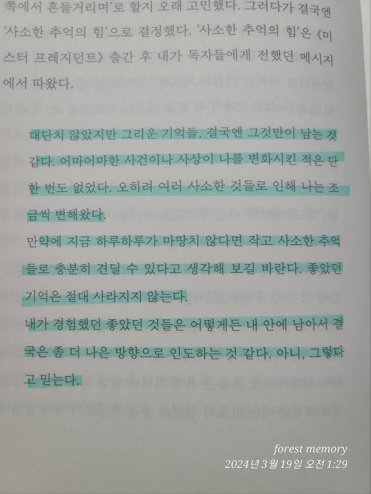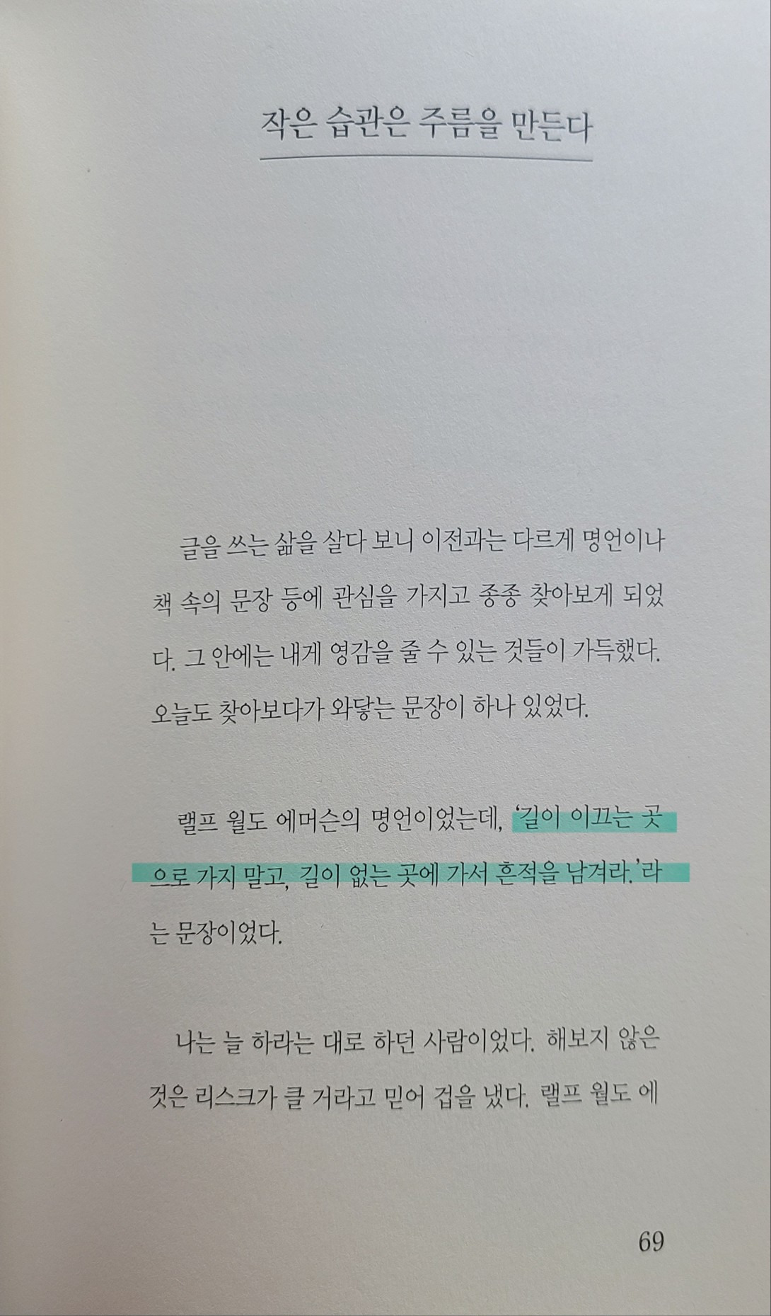 마음을 흔드는 명 문장이 있다면, 사진을 찍어 카톡프로필에 저장해두고 자주 읽어보곤 한다.